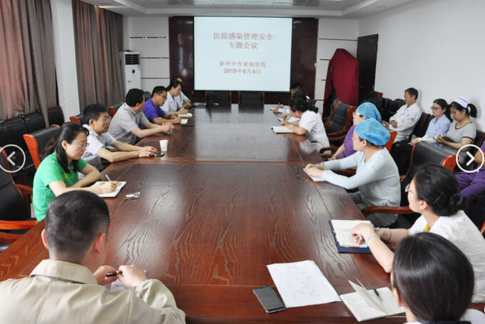 2019年6月4日上午,我院召开院感管理安全工作专题会议,对前期全院拉网式督查院感发现的隐患进行通报,会议由张克球院长主持,院领导班子成员、院感染管理领导小组成员及院感染主要部门负责人参加会议。