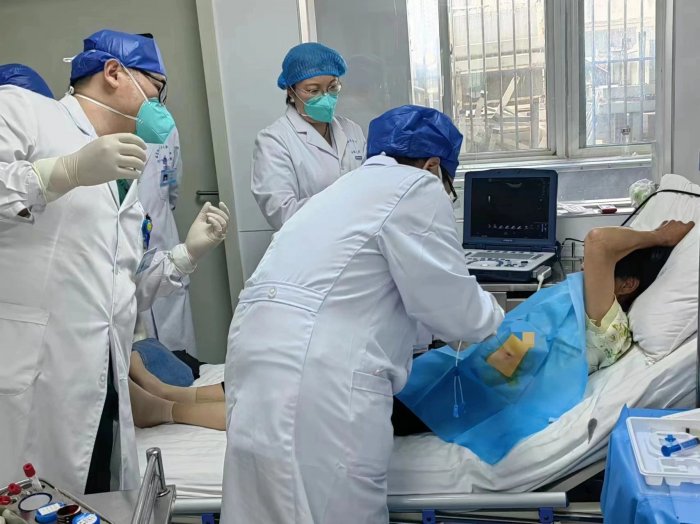 6月10日下午,结核一科科主任高春景成功为一名大量心包积液的患者床旁穿刺并放置心包腔引流管,开创了我院心包腔穿刺成功典范。
