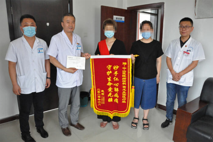 “谢谢!......太感谢!......你们都是我父亲的救命恩人呐......”6月15日,患者家属怀着激动地心情,将一面“妙手仁心解病痛,守护生命爱无疆。”的锦旗送到医院党委书记的手中,道不尽的千言万语,汇聚成只有感谢,激动几度哽咽。院党委书记王为民亲切安慰患者家属,家属啜泣着将其父亲的情况娓娓道来。