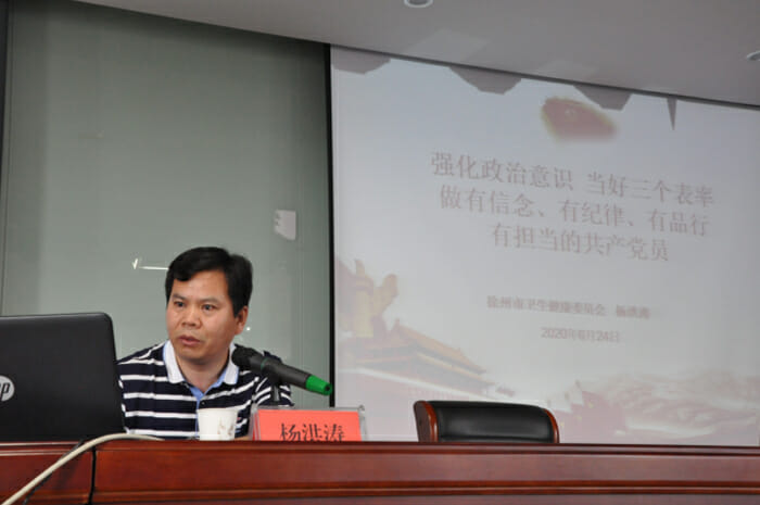 6月24日,徐州市卫健委机关党委书记、四级调研员杨洪涛来到徐州市传染病医院开展了一堂以“强化政治意识,当好三个表率,做有信念、有纪律、有品行、有担当的共产党员”为主题的廉政教育课。