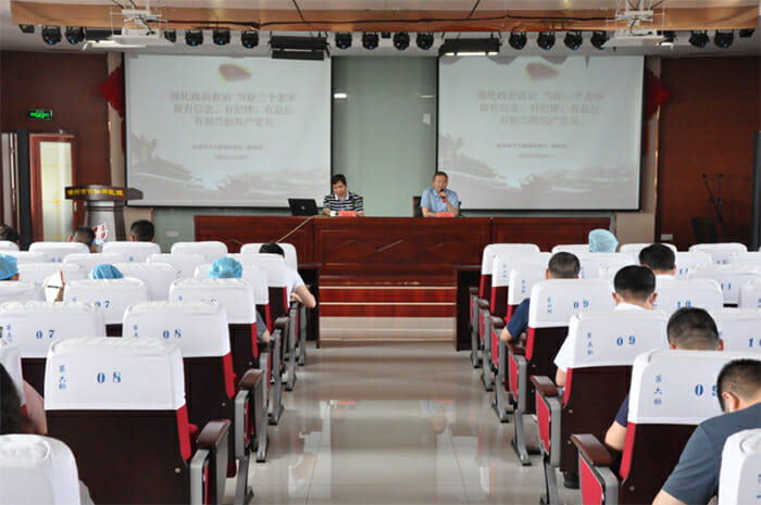 杨洪涛同志分别从有信念、有纪律、有品行、有担当四个方面阐述了如何强化政治意识,当好三个表率,强调要知党史、跟党走、尽党责,增强表率意识,廉洁意识,加强医德医风建设,做廉洁、守纪、幸福的医院人。