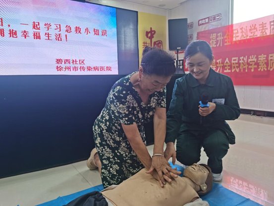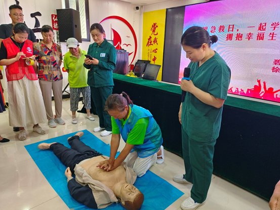 在现场互动和演练环节,居民们都积极参与,志愿者们对居民进行手把手指导,详细讲解具体操作步骤及注意事项,纠正不规范动作。使居民们在突遇紧急情况时能够正确的挽救生命、降低伤害程度。