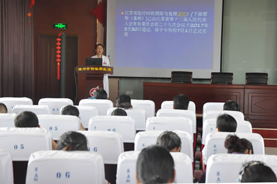 为了让广大职工了解到医疗界法律的最新进展,近日王春颖副院长为广大医务人员解读了条例明确的热点问题:如纠纷赔偿超过两万元,医院不得自行协商解决,患方故意伤医等七类行为要追责,对于同一病历资料患方只能复制一次,委托医疗鉴定不受地域限制,篡改病历、收红包等四类行为不允许。强调医务人员要坚持“以患者为中心”服务宗旨的,更好的为患者服务。