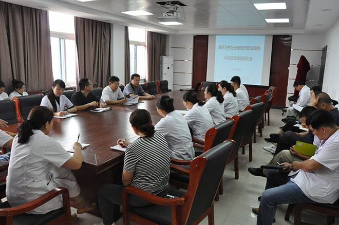 张克球院长在动员会上强调,习近平总书记在全国卫生与健康大会上提出的“敬佑生命、救死扶伤、甘于奉献、大爱无疆”的新时代医疗卫生职业精神,是对新中国成立以来卫生计生工作实践的高度凝练,饱含着党和国家对发展卫生和健康事业、增进人民健康福祉的高度关心和重视。我们要贯彻省卫、市计委部署的医疗卫生新时代职业精神大讨论活动要求,结合“十三五”中期规划、创建三甲医院战略目标,紧扣医院工作实际,在全院职工中广泛开展大讨论,形成共同的理想信念、价值追求、道德风尚和精神力量,使全院职工进一步坚定理想信念,增强宗旨意识,提升整体素质,把新时代职业精神融入到不懈奋斗、全心全意为人民服务自觉行动中去,成为工作的强大精神动力,以实践新时代医疗卫生职业精神的实际行动服务好淮海经济区群众健康。