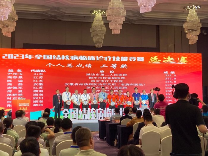 9月15日,由国家疾控局传染病防治司举办的2023年全国结核病临床诊疗技能竞赛在北京举行。经过紧张而激烈的角逐,我院结核四科主任高春景获得个人总成绩二等奖及基础知识单项奖优胜奖,个人总成绩排名全国第5名,基础知识单项排名全国第8名。同时,作为江苏代表队的主力队员,携手其他6名队员为江苏代表队获得团体二等奖,总成绩排名全国第二。