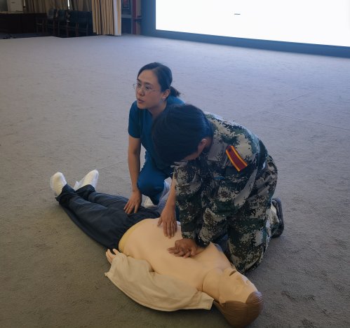 为进一步加强校园生命健康安全教育,提高学生对心脏骤停、气道梗阻等意外伤害和突发急症的应急处理能力。重症医学科护士长李培培和护士李瑶,通过现场讲解和演示,为学生详细介绍了心肺复苏术。从如何判断患者是否需要进行心肺复苏、到正确的按压位置、频率和深度,以及AED的使用方法。同学们聚精会神地聆听,现场气氛十分活跃。