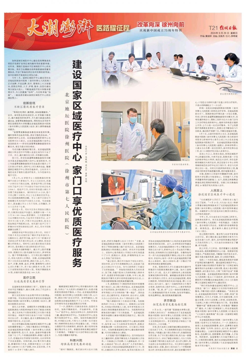 加快国家区域医疗中心建设是统筹推进优质医疗资源扩容和区域均衡布局的重要举措。近年来,围绕建设淮海经济区中心城市的战略定位和打造高水平区域性医疗中心的发展目标,我市卫生健康系统积极搭建高质量发展体系,开创了淮海经济区协同发展的新局面,徐州区域医疗高地效应更加凸显。