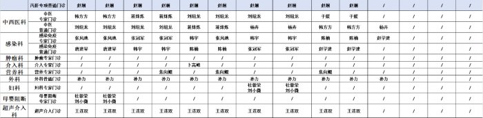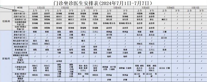 门诊排班表(2024年7月1日-7月7日)