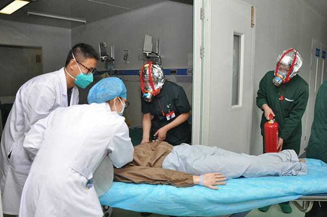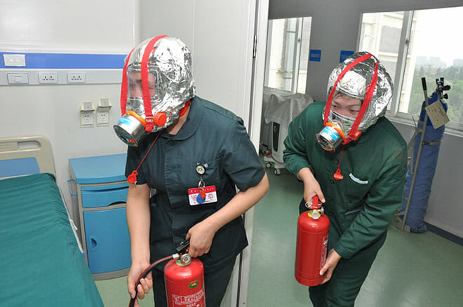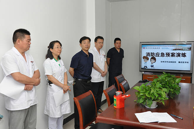 为深入开展“安全生产月“活动,普及安全知识,提高全院职工的安全意识,徐州市市传染病医院(徐州市公共卫生医疗中心)围绕“生命至上、安全发展”主题,开展了“安全生产月”安全知识竞赛、制作电动车火灾防范宣传专栏、隐患大排查等系统活动。6月26日上午,在ICU病房举办了“消防灭火及人员应急疏散演练”,院领导班子全体成员、全院消防安全员到现场观摩了演练。