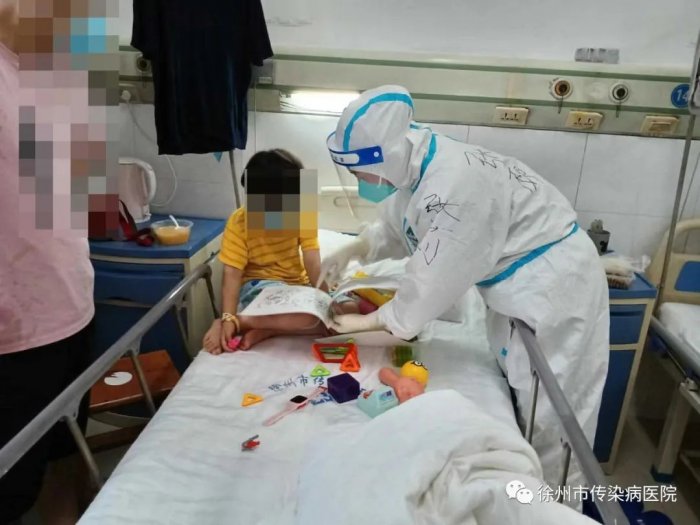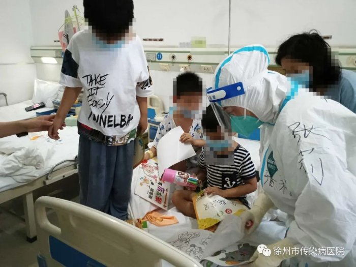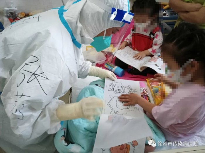许多来到隔离病区的孩子,虽然没有明显的症状,但远离父母,陌生的环境,仍让他们感到害怕焦虑紧张。医者父母心。为守护孩子们的童真世界,隔离七区的“大白们”除了提供专业的医疗照护,还开展了一系列有趣的活动,用耐心的态度、细致的关爱,拉近和孩子们的距离,抚慰他们的情绪。看,“大白们”正在发放儿童绘本、水彩笔、橡皮泥、印章等物品,小朋友们快快操练起来吧。