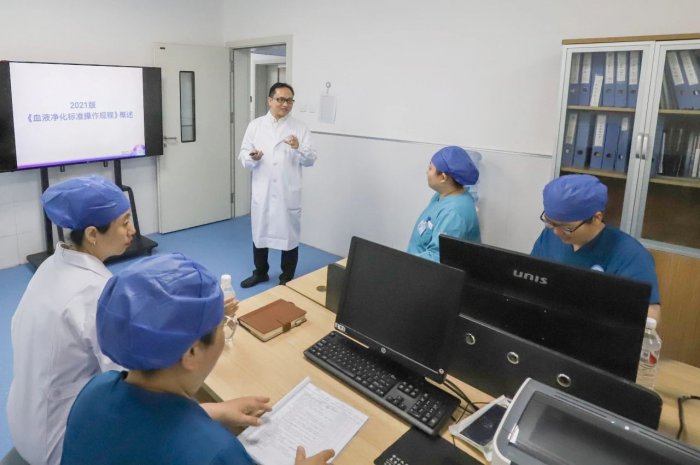 北京地坛医院血液净化中心主体位于顺义院区,中心有35台血液透析机,8台血液透析滤过机,4台床旁血液净化机,2套水处理系统,1套移动水机,常规开展血液透析、血液灌流、血液透析滤过、床旁连续血液净化治疗等,每年完成2万台次以上各类肾脏替代治疗,包括2万台次血液透析和100例次以上CRRT等治疗。