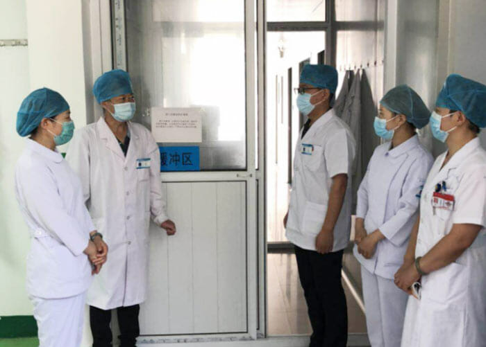 目前新冠疫情虽然进入常态化防控管理,但整体疫情防控形势仍处于严峻阶段,外防输入,内防反弹,仍是做好防控的工作重点。为进一步加强医务人员对住院患者发生/疑似发生“新冠病毒感染”的突发事件应急处置能力,规范隔离观察患者流程,保障医务人员和住院患者的安全,提高医疗工作效率。徐州市传染病医院感染管理科于2020年7月20日下午14:00组织医务科、护理部、门诊办、预防保健科、检验科及临床科室在结核六病区举办新住院患者出现“新冠病毒核酸筛查阳性”应急处置演练。