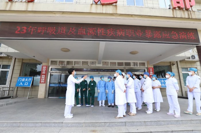为进一步提高医务人员发生职业暴露的应急处置能力,最大限度降低职业暴露后的感染风险,切实保障医务人员的职业安全,7月20日下午,徐州市传染病医院院感科联合公共卫生科于医院门急诊大厅举行呼吸道及血源性疾病职业暴露应急演练。