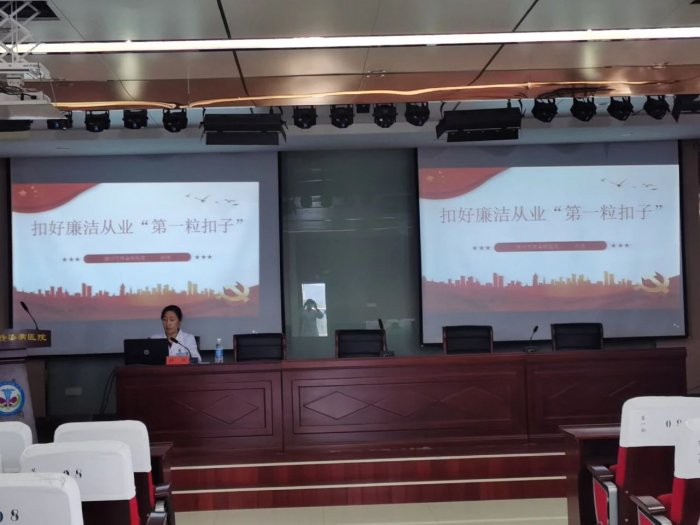 院纪委书记孙庆结合大量警示教育案例分别从年轻干部如何走上歧途,为何心态失衡、底线失守,如何扣好廉政从业“第一粒”扣子以及如何做好新时代有担当有作为的年轻干部等四个方面为年轻干部职工上了一堂纪法教育课。