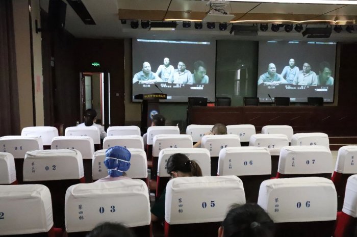 会后,全体年轻干部职工观看警示教育片《莫让青春入歧途》。