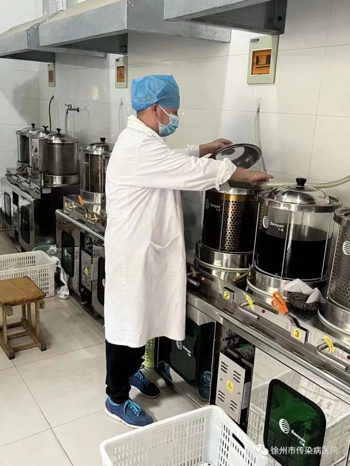 虽然工作辛苦,但每一位药师都坚守岗位,无私奉献。其中中药科每天既要根据患者“一人一方”准确调剂并及时熬制送达病区,又承担着医护人员预防新冠制剂的工作,最多时一天需熬制职工用药424付,患者用药157付。工作量虽大,但中药科的老师们从不抱怨,默默无闻地在工作岗位上奉献着。