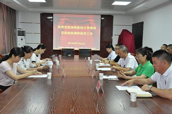 为进一步加强校院科技工作的交流,2019年7月24日上午,徐州医科大学科学技术处李俐副处长、麻醉学院张咏梅副院长、科学技术处秘书郭禹一行3人莅临我院宣传医科大学针对附属医院的科技激励及支持政策。院领导及部分科室负责人参加了会议。