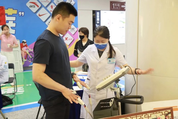 除此之外,医院还特地安排了中医科医务人员给市民开展中医适宜技术体验活动,让市民可以实地感受中医把脉问诊、品尝中药饮以及体验特色耳穴疗法。市民耿女士在咨询中医问诊后表示“医生讲得很透彻,解决了我心中的疑问,还学习到了不少健康知识,平时没时间去医院问诊的医生今天在地铁站就遇到了,希望以后可以有更多类似这样的活动”。