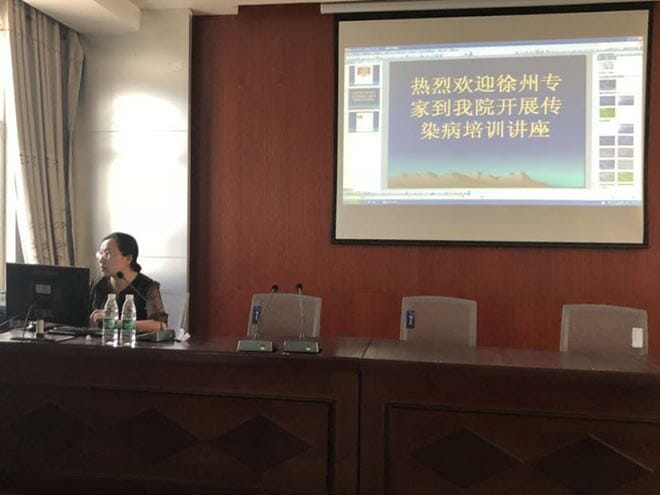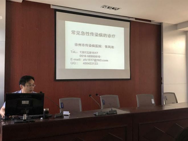 徐州市传染病医院(徐州市公共卫生医疗中心)是淮海经济区唯一一家集医、教、研、防为一体的三级专科医院,承担着淮海经济区传染病的救治和防护工作。近年来,在医改的大环境下,按照市卫计委关于优质医疗资源下沉,提升基层诊疗水平的主题,医院多措并举,不仅仅做好自己,还承担着相应的社会责任,数次组织医疗专家进基层,开展传染性疾病的讲座培训活动。