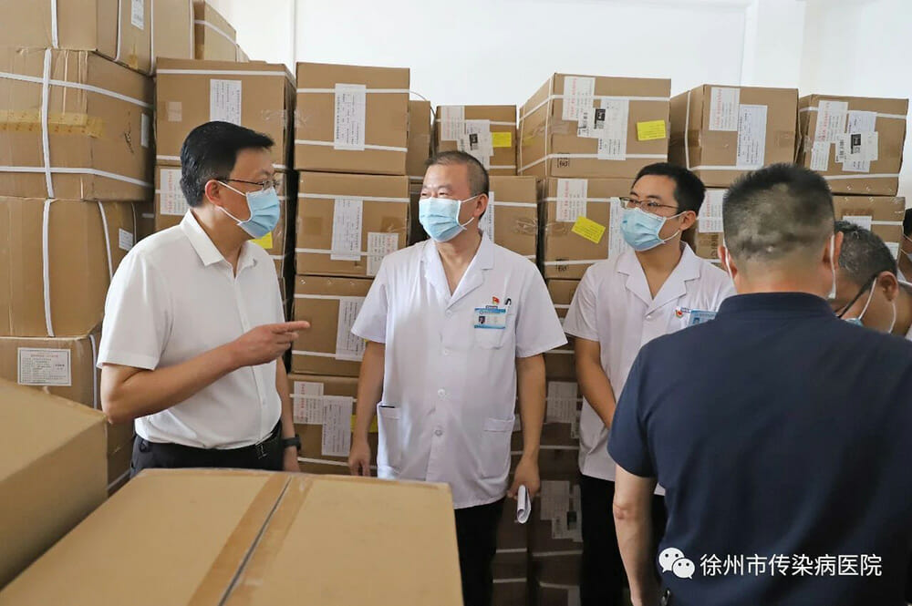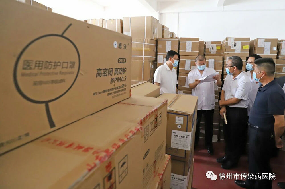 8月2日上午,市政府党组成员吴卫东带领市物资保障组成员单位领导到市传染病医院督查疫情防控物资储备工作,院党委书记王为民、院长苏珂、副院长王红艳陪同检查。