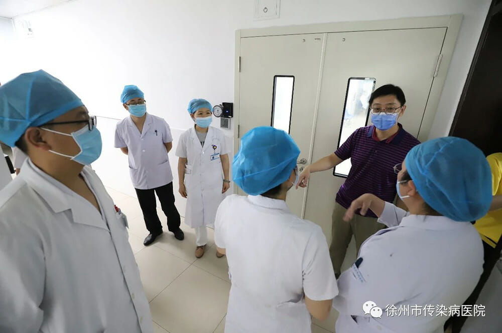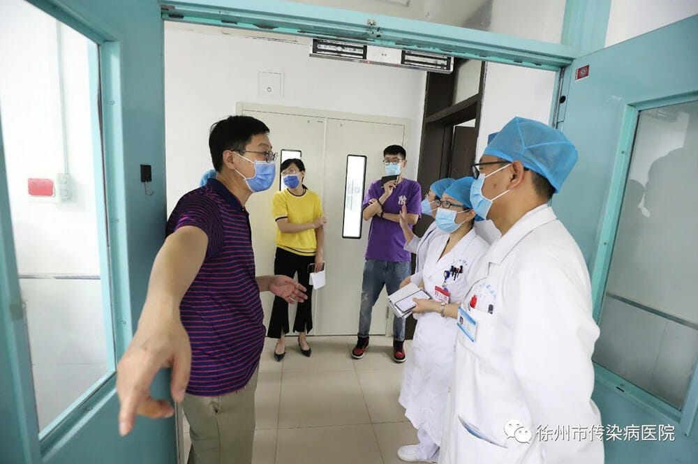 8月4日上午,受徐州市卫健委委托,徐州市医院感染管理质控中心主任欧阳林辉一行4人到市传染病医院督查新冠肺炎综合救治能力工作,院长苏珂、副院长潘永、副院长王红艳及相关职能部门主要负责人陪同检查。