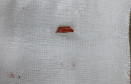 几经周折,王老汉最终来到了徐州市传染病医院(徐州市公共卫生医疗中心),我院外科常规收治“破伤风”病人,对“破伤风”的诊治,有着丰富的经验。经过对王老汉的近期情况了解及目前症状,基本明确诊断为“破伤风”。这时王老汉的症状加重,开始出现强烈的肌痉挛,王老汉被收入特护病房,症状逐渐加重,出现持续的呼吸肌和膈肌痉挛(引起窒息的主要原因),紧急予气管插管,呼吸机通气,镇静,经过我院医护人员的精心治疗和悉心照顾,王老汉脱离了危险期,期间我院外科发挥着巨大作用,及时发现并清理了王老汉右脚大拇趾残存的异物(见图),最终王老汉康复出院。