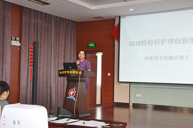 各护理单元积极参与,汇报的创新作品紧紧围绕患者的安全与护理质量的提升,参赛者分别从创新的背景、创新点、创新成果的示意图、原理、模型及其效果评价等方面以富有激情的演讲、丰富多彩的PPT演示及自制的简易模型展示等进行精彩的汇报,赢得了现场嘉宾评委及护理同仁的高度评价。