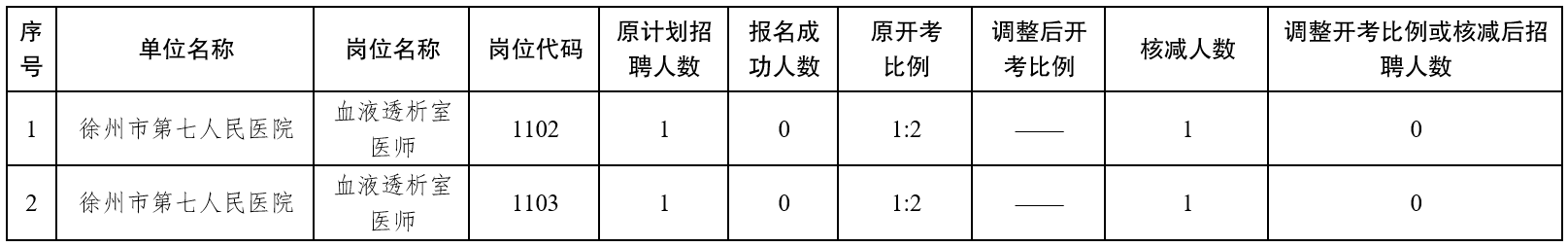 根据《2024年首都医科大学附属北京地坛医院徐州医院(徐州市第七人民医院)公开招聘第二批合同制人员公告》的规定,结合报名实际情况,经医院研究决定:对未达到开考比例的岗位进行取消。