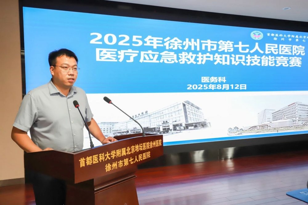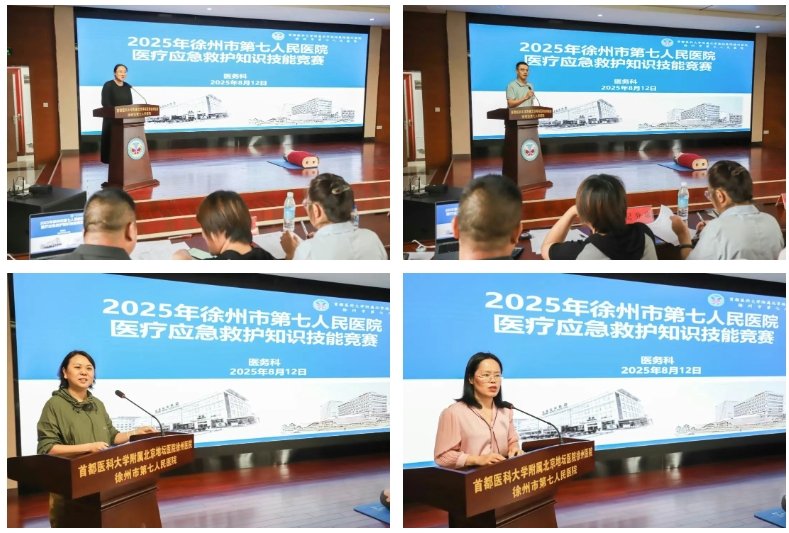 为全面提升医务人员应急救治实战能力,锻造一支技术精湛、响应迅速的医疗“尖兵”,8月12日,北京地坛医院徐州医院(徐州七院)举办2025年医疗应急救护知识技能竞赛。比赛由医务科科长王邺珩主持,全院临床、医技科室21支队伍同台竞技。