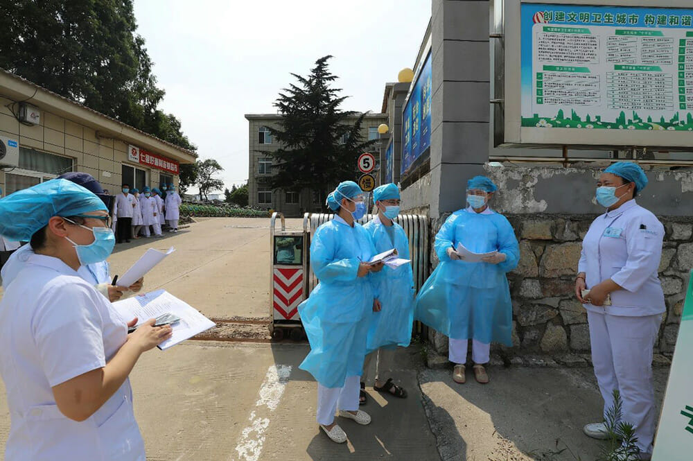 为进一步做好新冠肺炎医院感染预防与控制工作,有效降低新型冠状病毒在医疗机构中的传播风险,规范医务人员行为,提高医务人员的职业防护水平,严格落实首诊负责制及终末消毒工作,提升医务人员新冠肺炎疫情应急处置的实战能力。8月11日下午,徐州市传染病医院感染管理科联合医务科、护理部、门诊部、预防保健科、总务科及保卫科等科室,组织医、护、技及行政后勤保障人员开展中高风险区人员自行来院就诊的接诊及救治、新冠肺炎隔离病房医务人员发生职业暴露及出现核酸检测阳性的应急演练。
