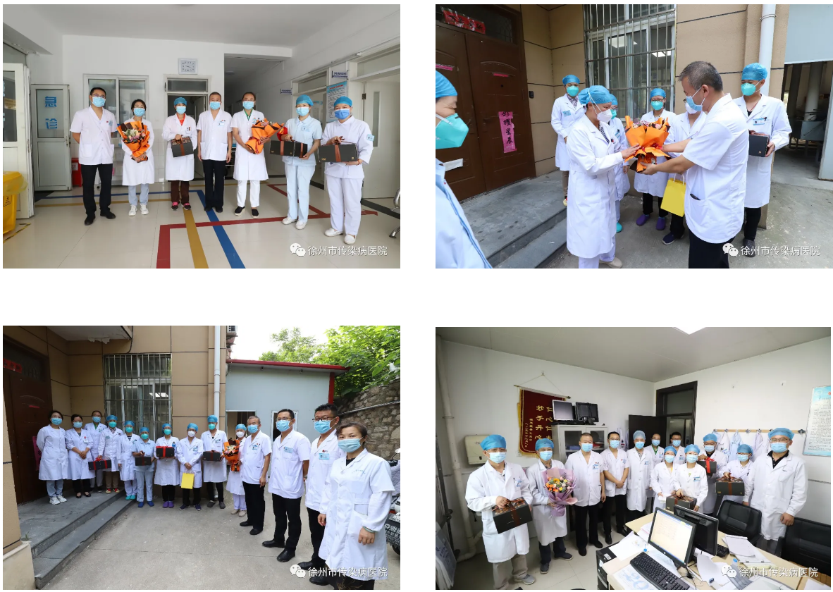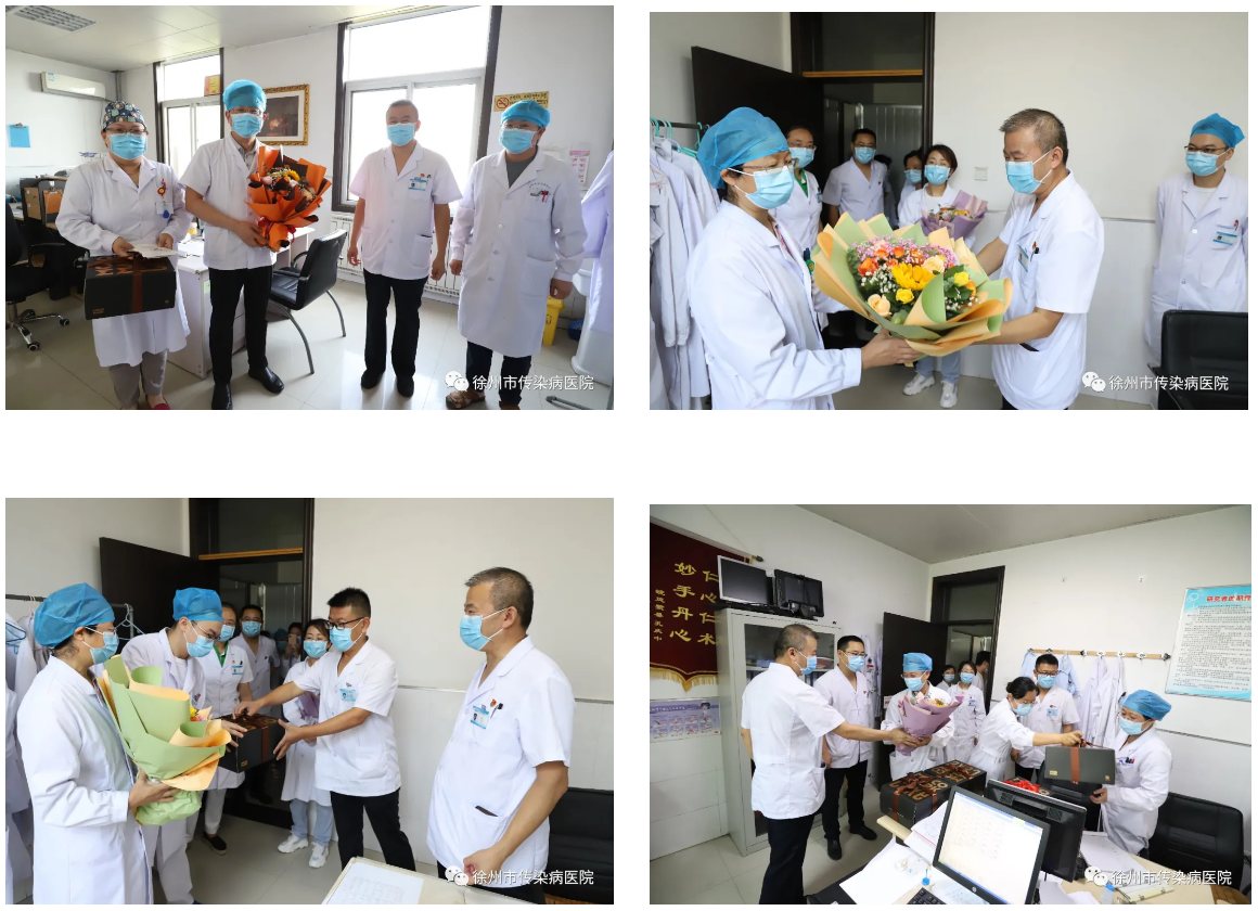 8月19日上午9:00,在第四个中国医师节来临之际,市传染病医院院领导班子成员带领职能科室负责人,深入各病区、门诊看望慰问奋战在一线的医务工作者,为他们送去鲜花和节日蛋糕,并致以节日问候和崇高敬意。