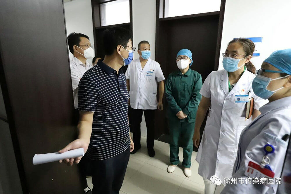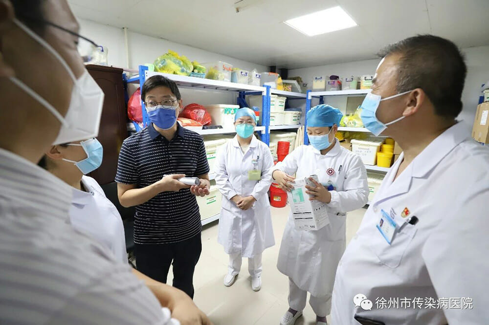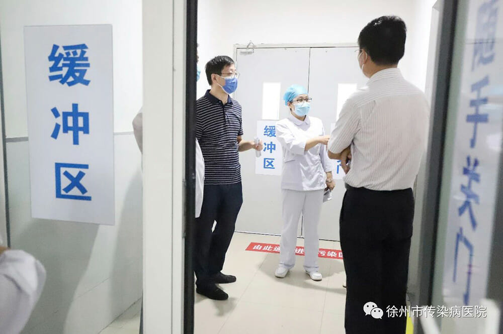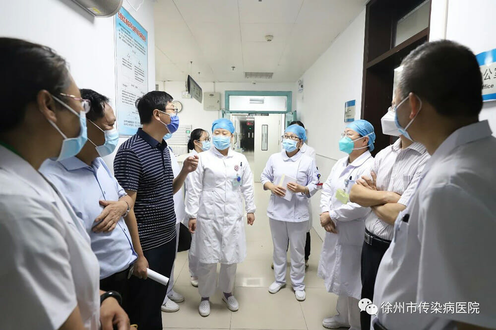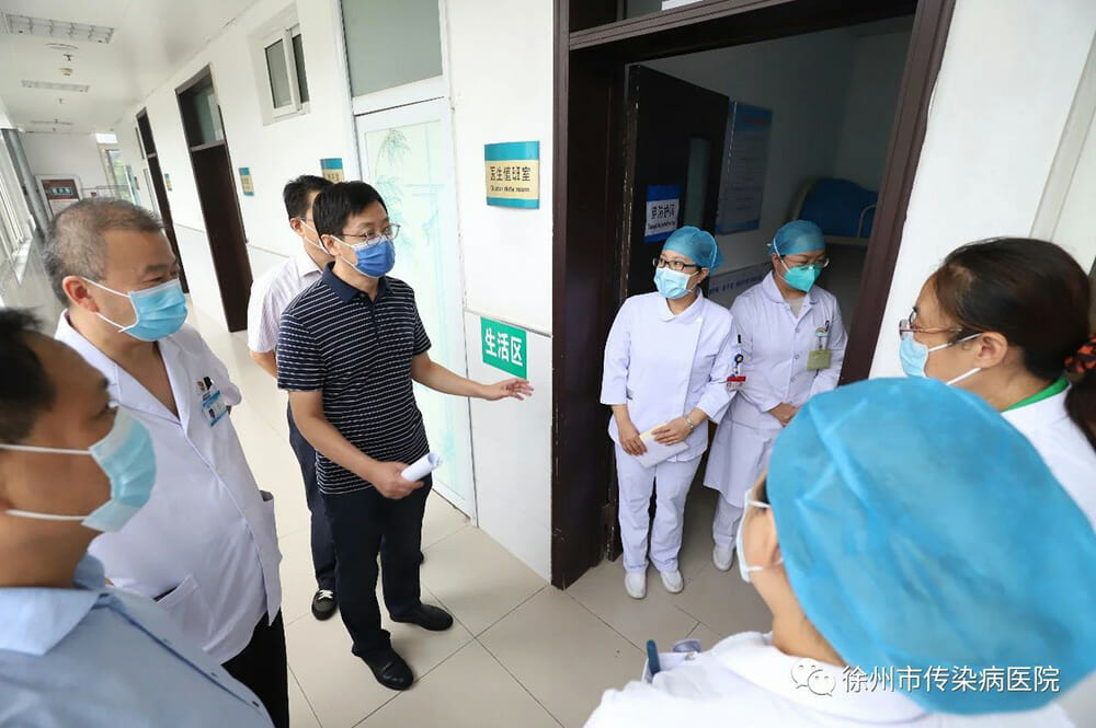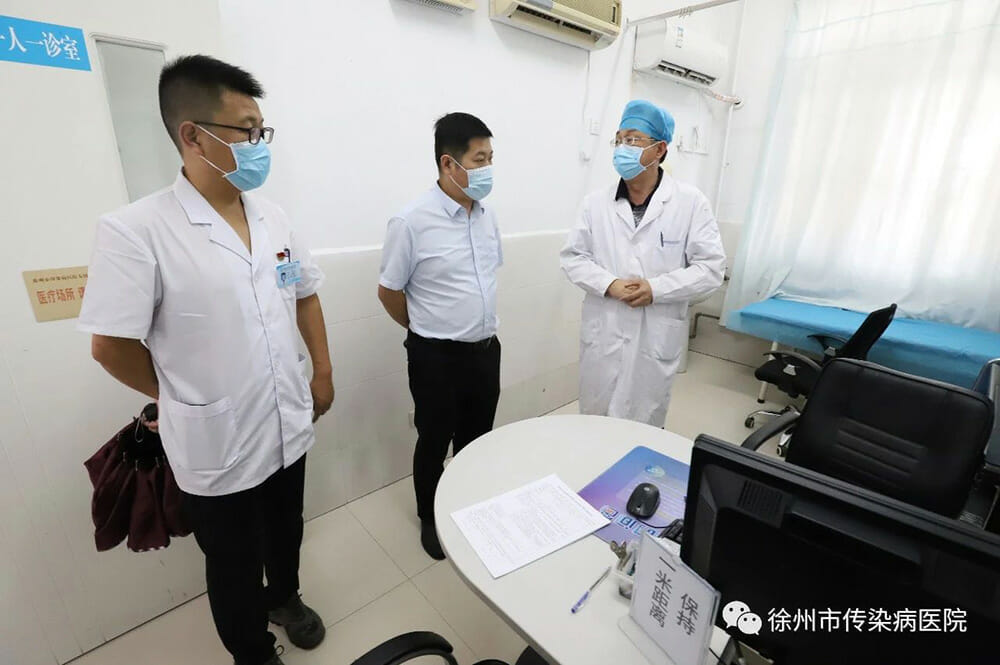 8月20日上午,江苏省卫健委院感防控评估专家组欧阳林辉、王建设、曹剑梅、杨孝东一行四人到市传染病医院对新冠肺炎院感防控工作进行检查评估,市卫健委医政处副处长王召友,市传染病医院党委书记王为民、院长苏珂、副院长潘永、副院长王红艳及相关职能部门主要负责人陪同检查。
