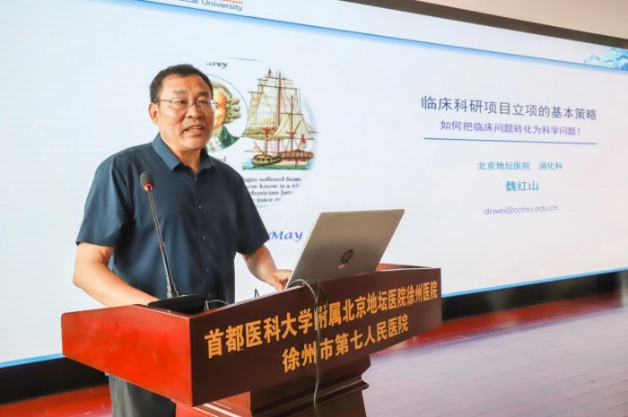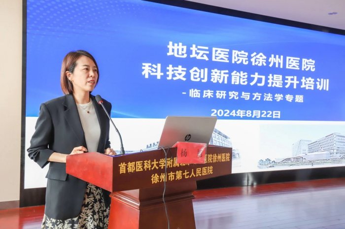 为推动医院学科建设,切实提升医务人员临床科研能力,8月22日下午,北京地坛医院徐州医院(徐州市第七人民医院)举办科技创新能力提升培训—临床研究与方法学专题讲座活动。会议由地坛医院科技处杨旭主持,地坛医院消化内科魏红山教授、研究所李俊南博士从不同临床研究角度进行了分享,来自医院临床、医技、护理各科室近100余人参加了此次培训。