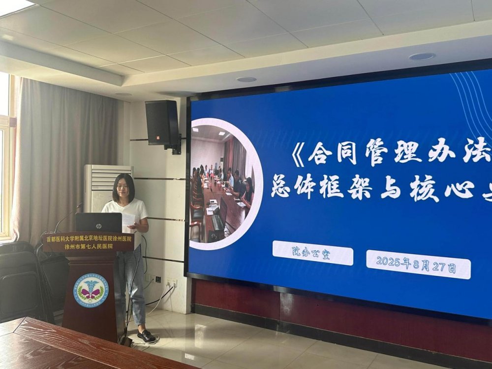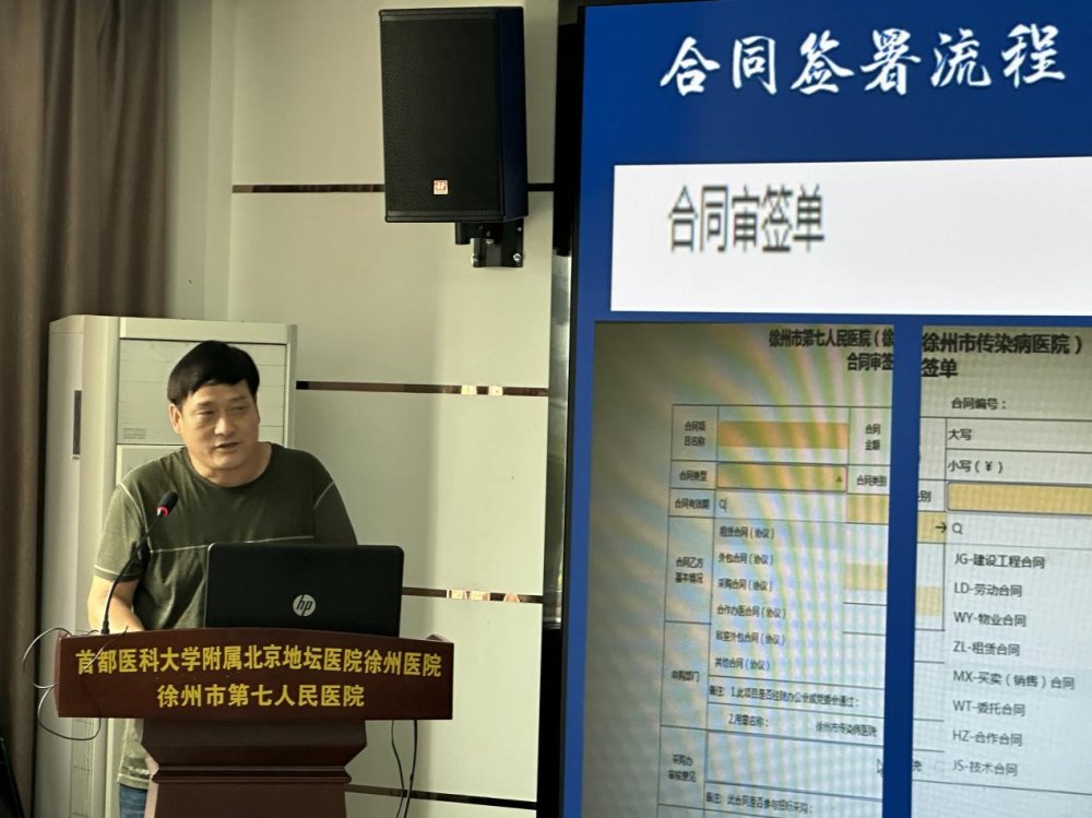 为进一步规范医院合同管理流程,防范法律风险,提升医院规范化运营水平,8月27日上午,由办公室牵头,组织召开《徐州市第七人民医院合同管理办法》(修订版)专题宣贯会。各临床医技科室主任、护士长及相关业务骨干、职能科室负责人及合同管理相关工作人员参加会议。