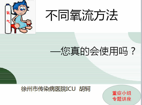 首先胡轲护士给大家分享的题目是《不同氧流方法》,他从氧疗的现状、缺氧的类型、氧疗的目的、种类、适应症和并发症一一进行了阐述。