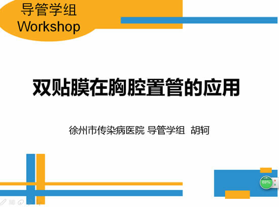 胡轲护士给大家分享的第二个题目是《双贴膜在胸腔置管的应用》,他用拓展的思路从胸腔置管的概述、调查研究、根本原因、对策流程以及现场展示,给大家上了一节生动形象的课。