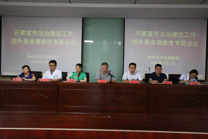 9月1日下午,在12号楼三楼会议室召开了开展宣传法治建设工作提升患者满意度专题会议。党委书记王为民、院长苏珂及院领导班子成员、全体中层干部参加会议。