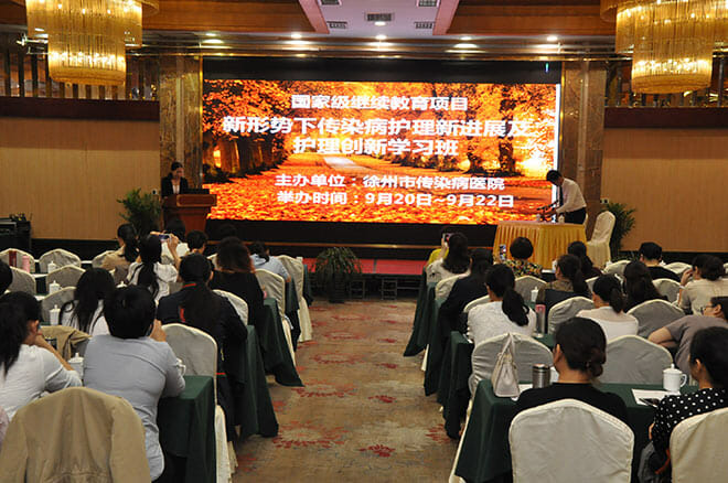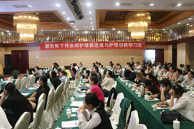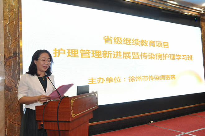 徐州市传染病医院王春颖副院长为本次学习班致欢迎词,徐州市护理学会理事长夏静对本次学习班的举办表示祝贺,并提出学习要求。
