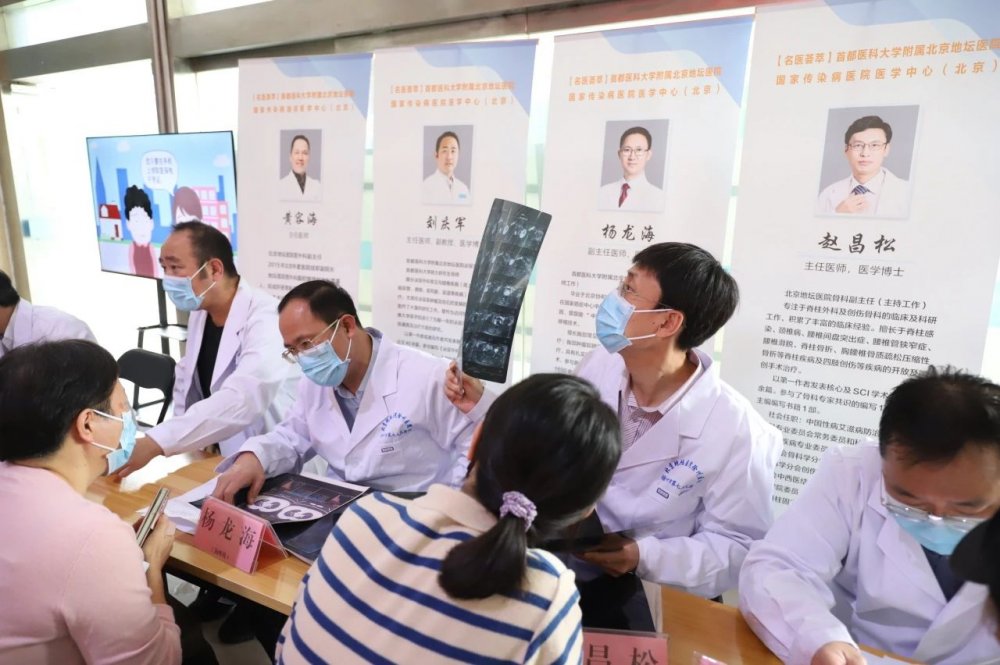 10月18日上午,总院北京地坛医院普外科副主任黄容海、骨科副主任赵昌松、泌尿外科主任刘庆军、胸外科副主任杨龙海、介入导管室主任周震来到徐州院区(市七院),开展外科大型义诊活动。