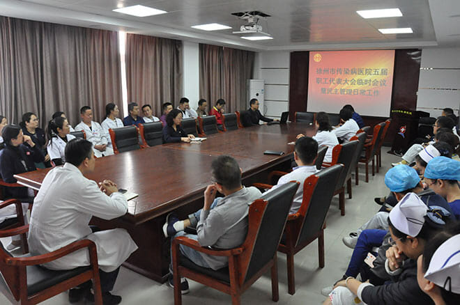 本次会议应到代表66人,实到代表52人,超过应到代表总人数的三分之二。会议由院工会主席史为栋同志主持,他指出,根据《关于开展制定医院章程试点工作的指导意见》(国卫办医发[2018]12号)要求,按照市卫健委统一部署,作为徐州市医院章程制定第一批试点单位,我院已完成《医院章程》初稿拟定,特召开职代会讨论。