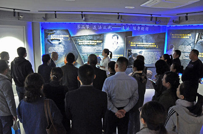 教育基地设立了反腐之路、警示教育、示范教育、影视教育等展厅,展示了大量真实的案例资料实物。同志们跟随讲解员专业的解说,详细了解高层腐败到基层微腐败,从严重违反党纪国法到违反中央八项规定要求,一个个违规违纪典型案例的解析,深刻地揭示了“廉贪一念间,荣辱两世界”的前车之鉴。一张张展板、一幕幕镜头、一声声忏悔、一句句告诫深深烙印在同志们的心里,让同志们深深的感受到腐败行为给党和国家所造成的巨大损失,给社会、家庭、个人所带来的沉重代价。一系列震人心魄的真实案例,使大家接受了一场深刻的精神洗礼。