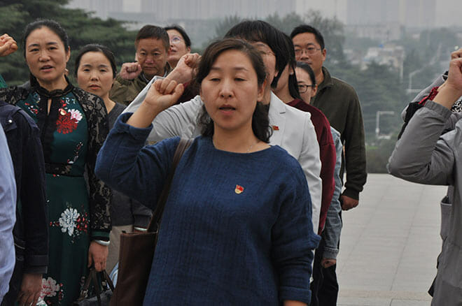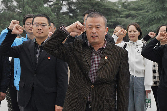 10月22日,淮海烈士纪念塔前,面对鲜红的党旗,徐州市传染病医院党委书记王为民同志作为领誓人,带领全院80余名到场党员一起高举右手,再次庄严宣誓。“我志愿加入中国共产党……随时准备为党和人民牺牲一切,永不叛党。”铿锵恢宏的誓词,强烈震撼着在场的每一位党员,一字一句,神圣而豪迈,体现了党员同志们对中国共产党的无限忠诚。
