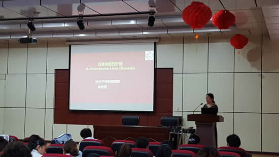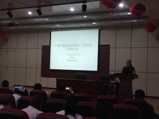 培训活动在徐州市利国医院领导的大力支持配合下有序开展,参会人员约八十余人。首先梁艳丽主任就《自身免疫性肝病》的范围和发病机制做了简单的概述,授课重点主要是自身免疫性肝炎的概念、病理变化特点、临床表现、诊断依据特点、分型治疗,以及自身免疫性肝炎和其它肝病的关系。张凤池主任则以一例临床病例为切入点,根据患者的入院体检、病史特点、不明原因的长期发热等,对《布鲁氏菌病》的病原学、流行病学、发病机制、临床表现、实验室检查、诊断、治疗等进行了详细的讲解。最后刘慧梅主任先从我国结核病的耐多药率,再通过肺结核的早期诊断概况 、以氟喹诺酮类为代表的二线抗结核药物具有广谱的抗菌活性,其广泛应用,阻碍活动性肺结核的早期诊断,增加耐药风险,不利于结核病的防控、对于疑诊结核或不能排除结核的CAP患者,在明确诊断前,慎重使用氧氟沙星类等几个方面,全方位的解读了《早期诊断肺结核减少二线药物应用》。