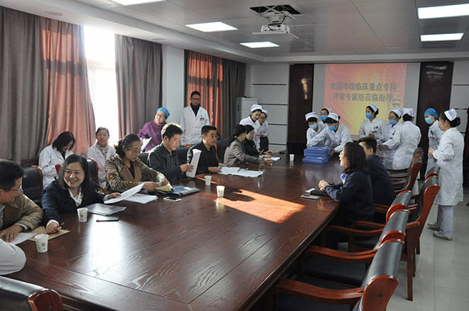 2018年11月1日上午,以徐州市中心医院丁继存副院长为组长的市级临床重点专科评审专家组一行5人莅临我院,对徐州市传染病院重症医学科进行现场评审。张克球院长、王春颖副院长等院领导,医务科、护理部、科教科、政工科、行风办、财务科、设备科、重症医学科等科室相关人员陪同评审。