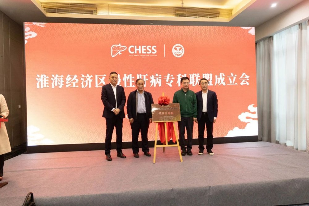 金荣华、王凯、陈效友、祁小龙共同为淮海经济区慢性肝病专科联盟揭牌。