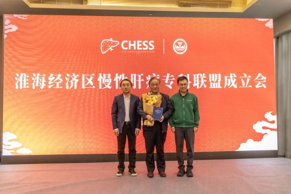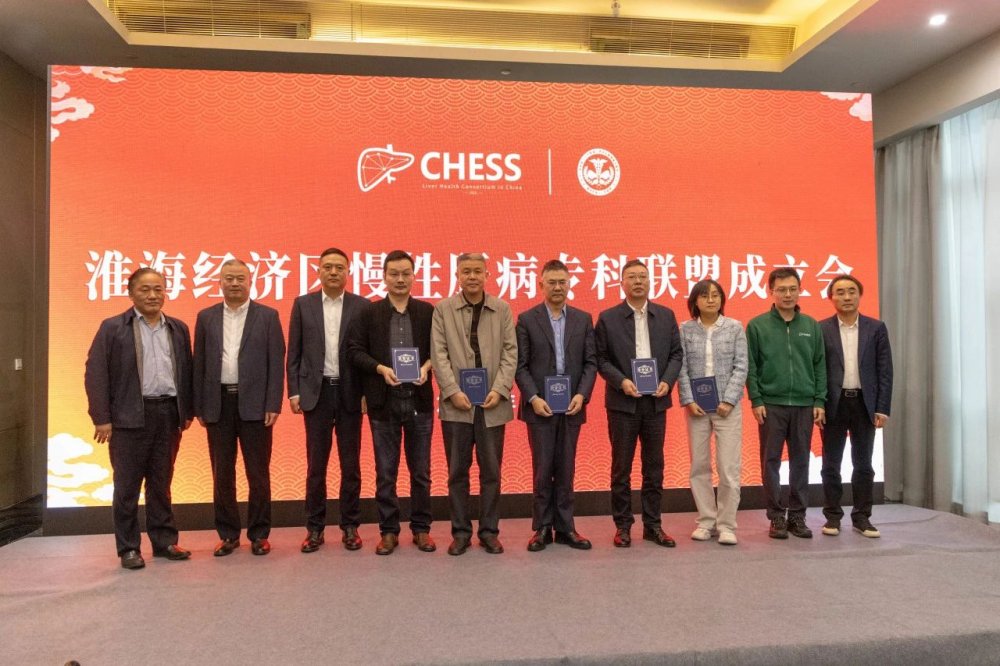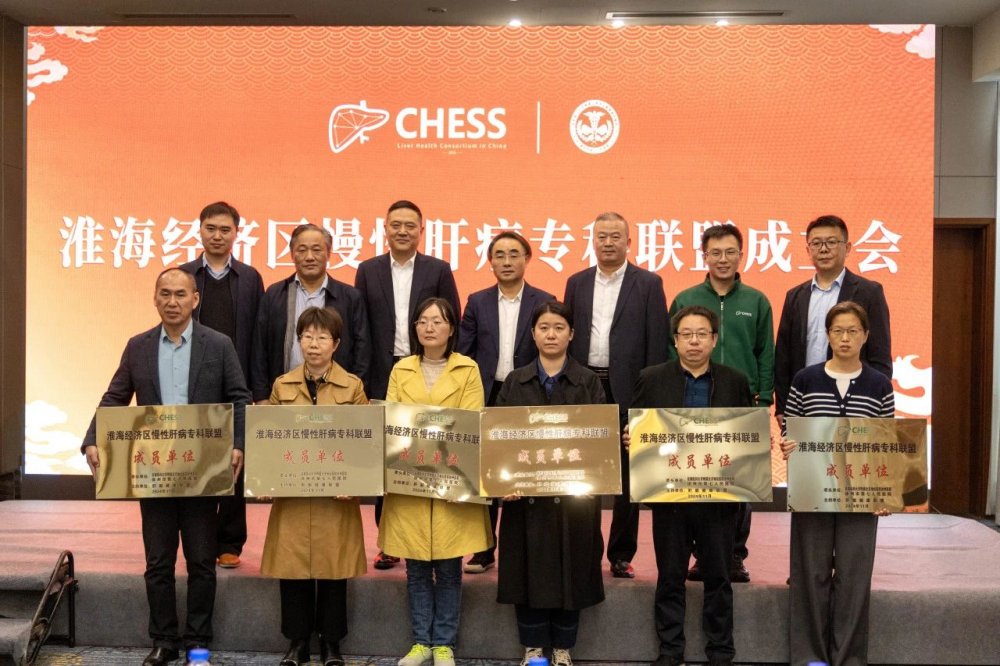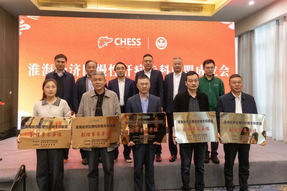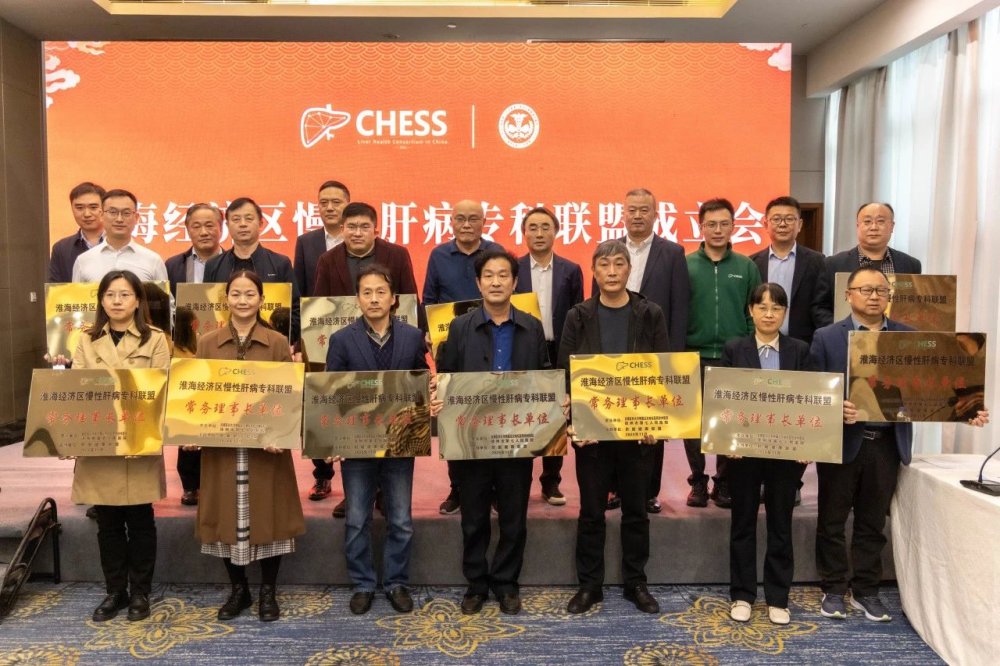 金荣华、王凯、陈效友、祁小龙、王为民等共同为淮海经济区慢性肝病专科联盟成员单位授牌。