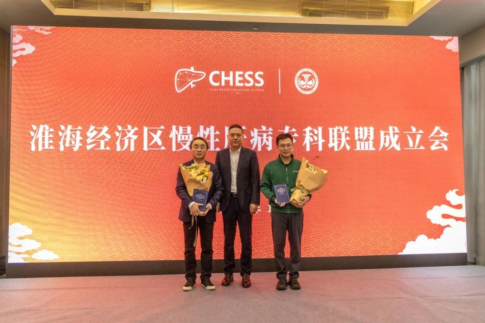 金荣华、祁小龙为淮海经济区慢性肝病专科联盟理事长颁发证书。