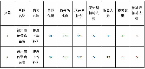 徐州市传染病医院2020年公开招聘非在编工作人员核减及降低开考比例的通知