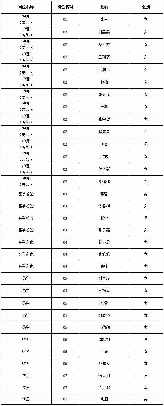 下附笔试人员名单(具体考试时间请关注徐州传染病医院官网公告):