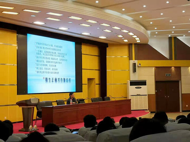 为全面加强学校传染病防控,保障广大师生身体健康,提高师生健康素养,从医疗卫生和疾病预防的角度,为师生打造健康、美好、平安、和谐的校园。2019年10月31日,徐州市传染病医院张凤池、高春景两位主任走进江苏省徐州财经高等职业技术学校,在该校报告厅,通过电视全程直播的方式,为学校四个系6000余名师生,开展校园常见传染病健康防控讲座。